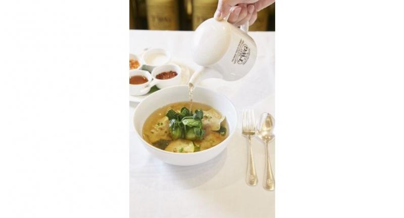 For a wonderful appetiser, Crustacean Wonton Soup (Bt250) is replete with lobster, crab and prawn nestled in the wontons, and even a hint of truffle. It’s served with baby bok choy in an aromatic Imperial Oolong-infused broth.