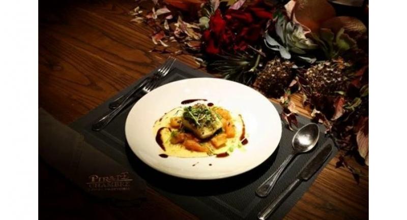 The feast ends with Double Chocolate Mixed Nuts Cheesecake served with sweet wine.