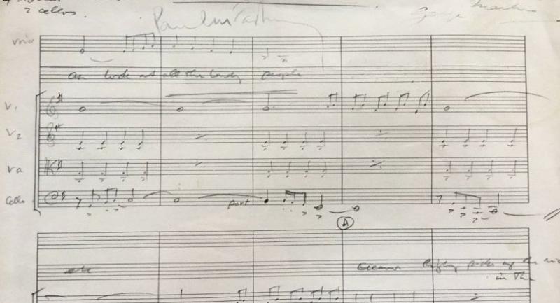 It also includes notes specifying that it was to be recorded at London's Abbey Road Studio number two and that four violins, two violas and two cellos were to be used.