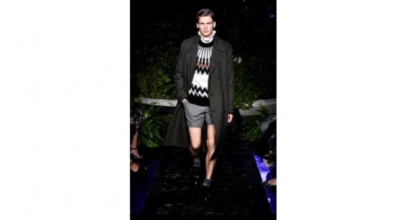 Florals dominate dresses, from a sleeveless black pleated dress, a new take on a dress from his first ever collection, to a sleeveless dress with cutaways at the waist in a multi-colour jacquard, like a wildflower meadow. The same jacquard is used for a fitted, colourful, feminine coat.