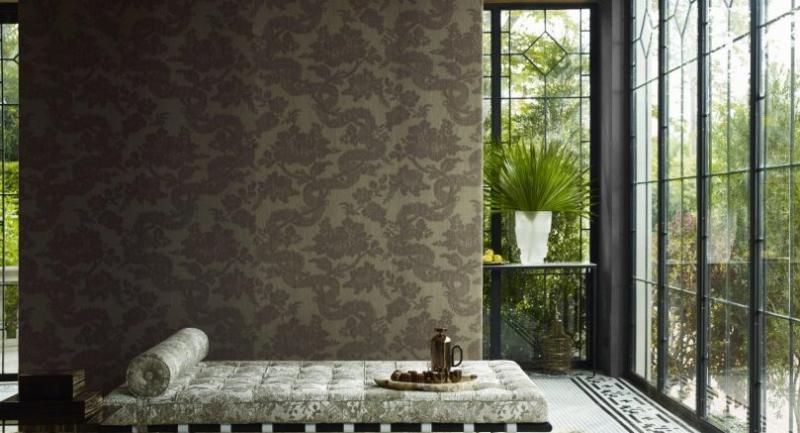 Old World charm manifests in an array of ornamental prints in the Floriental collection. The name combines “floral” and “oriental” for a collection that revives 18th-century damasks and warp printing, giving historic artworks a fresh lease of life.