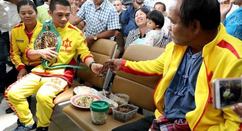 An army of local media, his family members and fans assembled at Suvarnabhumi Airport to welcome home Thailand’s sporting superstar, who outpointed Francisco Estrada of Mexico in Los Angeles.