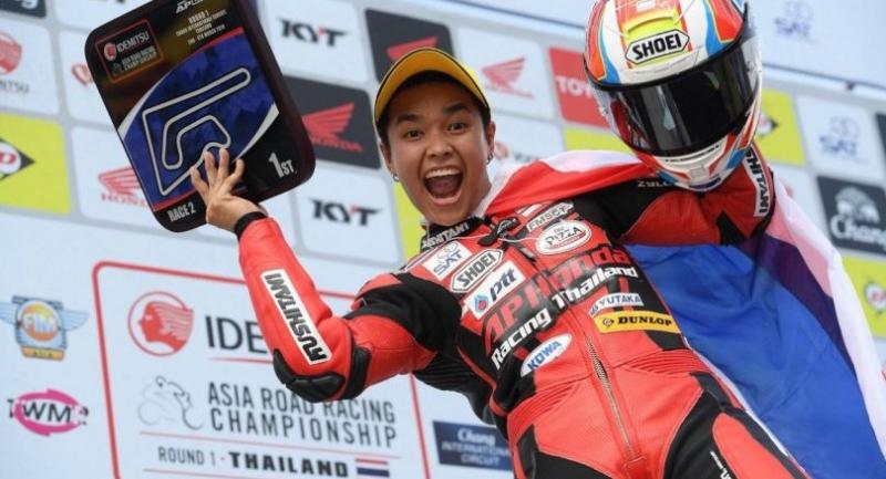 "It was the best day for me. I made a few mistakes yesterday and I managed to correct them all today. I'm so happy that I won the race for my Thai fans and the team today. I'd like to thank my team for their hard work throughout the weekend and Thai fans from around the country," said Muklada after Race 2 of the Asia Production 250cc in Buriram on Sunday.