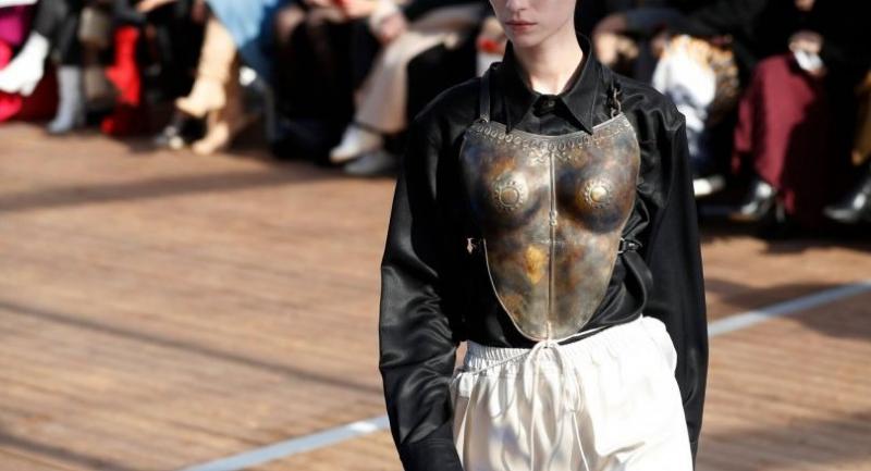 Meanwhile, French designer Veronique Leroy had earlier shown her collection on the screen of a Champs Elysees cinema.