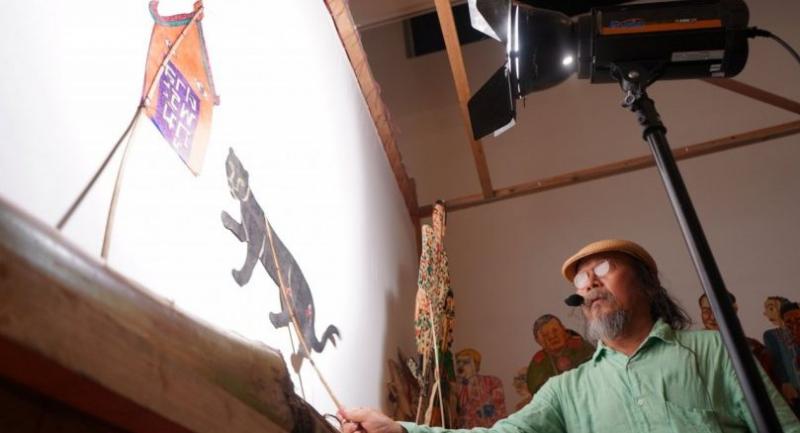 Vasan Sitthiket manipulates a puppet in a satirical take on the tycoon who alleged killed a black leopard in a wildlife sanctuary. /Courtesy of Chatip Suwanthong