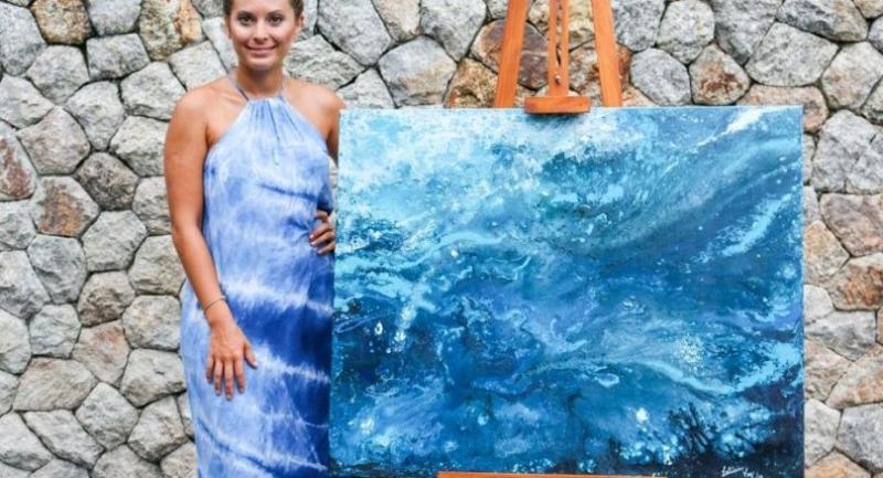 Inspired by the power of the sea and the pure beauty of Mother Nature, her artworks use a bold yet calming colour palette to create a serene oceanic ambience. The opening night of the exhibition will feature live music and canapes by chef Belinda, while guests will have a chance to purchase some of artworks.