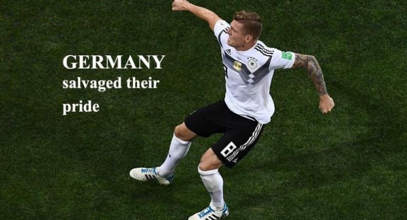 But the rescue act from Kroos is a huge lift to a side who saw Jerome Boateng sent off late on. They now have qualification for the last 16 back in their own hands ahead of their final Group F game against South Korea on Wednesday.