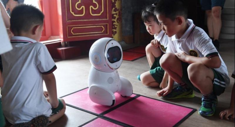 THE CHINESE kindergarten children giggle as they worked to solve puzzles assigned by their new teaching assistant: a roundish, short educator with a screen for a face.