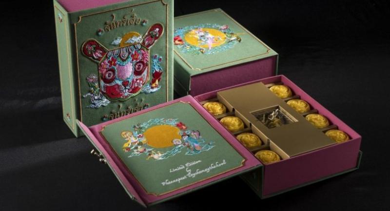 The hotel’s famous egg-custard mooncakes are presented in an embroidered gift box that draws inspiration from a Chinese Mid-Autumn Festival folk tale about the Goddess of the Moon and a rabbit, as well as the classic Thai poem “Jun Euey Jun Jao” (“Dear Moon”).