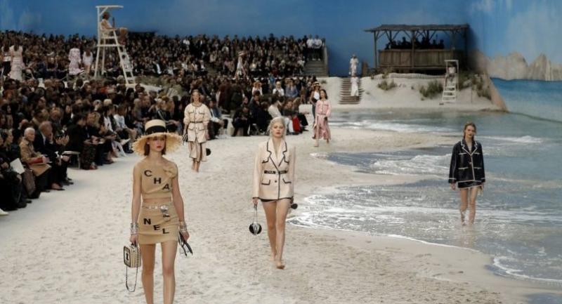 With soft drizzle falling outside and the October chill beginning to bite in a grey French capital, more than one fashionista regretted not taking a towel to Chanel’s artificial beach.