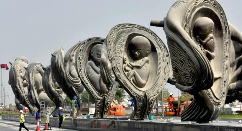 FOURTEEN giant bronze sculptures by British artist Damien Hirst graphically charting the moment of conception to birth greet patients arriving at an $8-billion (Bt263 billion) hospital in the Gulf state of Qatar.
