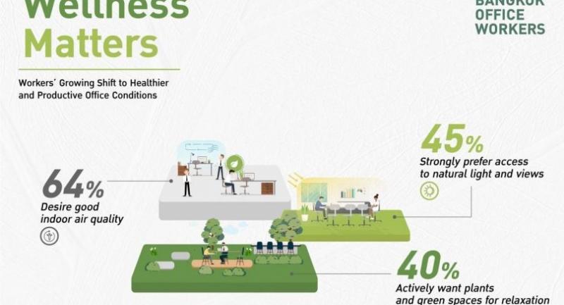 The survey, conducted in November, encompassed 400 respondents living in Bangkok aged 25 to 45, with an equal gender distribution, working for both Thai and international companies. The objective was to gain insights about Bangkok’s workers current work-life circumstances and their attitudes towards their workspace, to better understand how office space plays a role in both job selection and satisfaction, and to help plot upcoming office space trends for both employers, and commercial real estate developments.