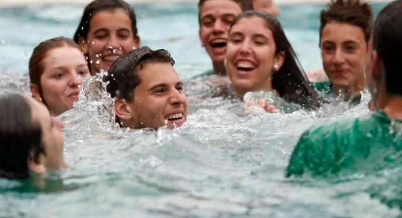 Thiem fulfilled the club tradition of the winner leaping fully clothed into the swimming pool on the grounds.