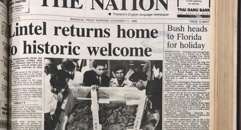 The Nation has also closely monitored the struggle to curb illegal trafficking in venerable Thai artefacts. It was an important day in November 1988 when we were able to report that the Art Institute of Chicago had agreed to return a looted temple structure known as the Narai stone lintel.