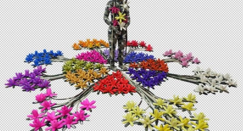 “Yell and Silent” (2018) is an installation comprising approximately 180 soft-sculpture water lilies surrounding a central andromorphic form enwrapped in camouflage-print cotton. The work, which will dominate the majority of the exhibition space, is autobiographical in nature as it recalls a formative childhood memory of the artist. At its core, the work deals with the fundamental quandary of freedom and its cost. Freedom, and its myriad of historical interpretations, have all come at great cost and for Svay, it was an exchange of his mother’s love. In this work, the water lily is a symbol of this exchange. The work invites viewers to re-consider their understanding of freedom and its value to personal growth and betterment.