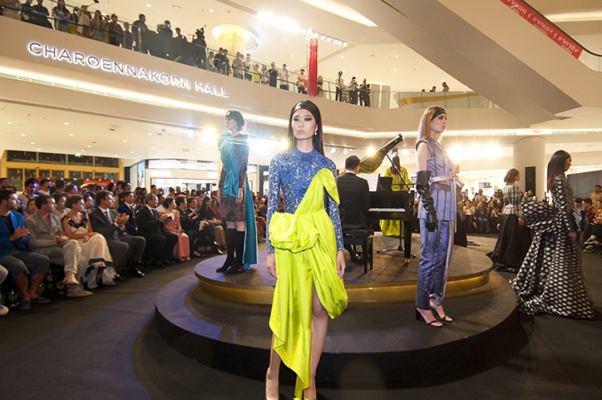 The Italian brand’s offerings made the most of exquisite Thai fabrics by applying Italian artistry to create uniquely beautiful pieces. The highlight of the Marras collection was a glamourous evening gown with three different shades – grey, burgundy and dark brown – merged together to create an exceptional piece that any woman will be proud to own.