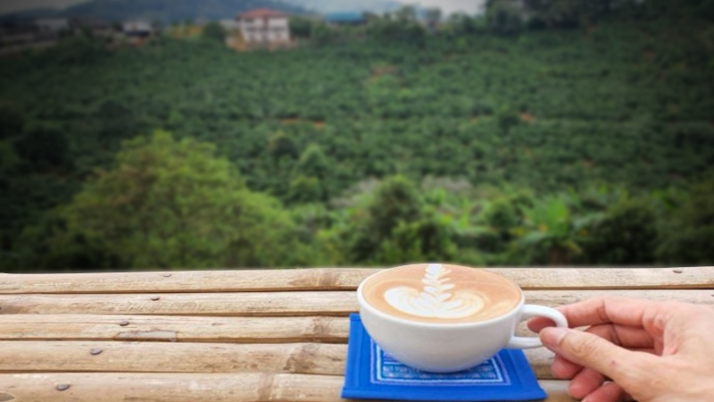 The coffee is served by the local barista, an Akha girl with expertise in grinding, brewing and even creating beautiful latte art.