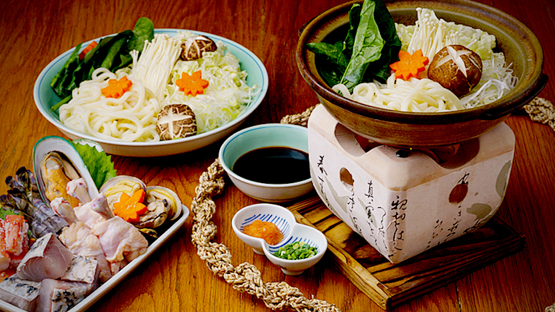 "Nabe" refers to a large Japanese pot in which a selection of meats, fish, seafood and vegetables are cooked together in a seasoned broth to provide a wonderful communal meal. Often described as a winter specialty, a nabe hotpot stew can last for many hours as the heat beneath the pot is replenished and ingredients are added as desired.