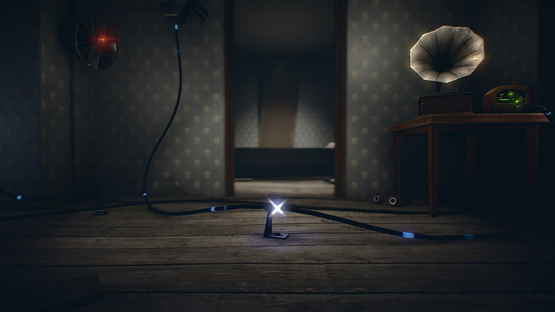 From there you can hop between other cables snaked along the ground or attached to different surfaces, as well as into transistor boxes and other electronic sources. Over the length of the adventure, the backstory of which is told in collectibles spread throughout the environment, you'll hijack everything from the power amp on a record player to a child's RC car, to domestic and killer robots and other forms of machinery.