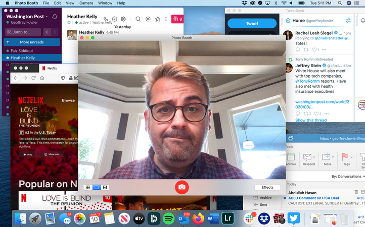 Not all of it worked as advertised. I know video conferencing has major devotees, but in my experience it has worked about half of the time. My smart Post colleagues dig up amazing scoops but are continually befuddled by Cisco Webex. For some meetings with far-flung people, I'm the only one on video because nobody else could make it work.