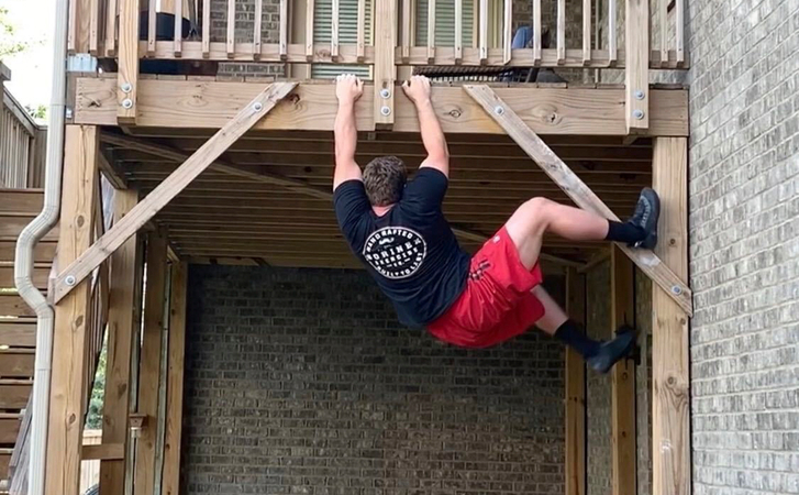 By June, after Northern Virginia eased into reopening, Schweitzer no longer needed to scale his deck. He and Shelby found a bouldering spot on a nearby trail called Bear's Den. Schweitzer planted his feet, grabbed onto an exposed rock lip and shimmied up, up, up, as high as this quarantine training would take him.