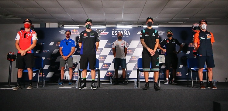 The time is nigh and ahead of track action for the Gran Premio Red Bull de España, the pre-event Press Conference got things in gear. Reigning Champion Marc Marquez (Repsol Honda Team) was joined by the fastest man in testing, Maverick Viñales (Monster Energy Yamaha MotoGP), Fabio Quartararo (Petronas Yamaha SRT), Alex Rins (Team Suzuki Ecstar), Valentino Rossi (Monster Energy Yamaha MotoGP), Jack Miller (Pramac Racing) and Pol Espargaro (Red Bull KTM Factory Racing) to talk racing once again.