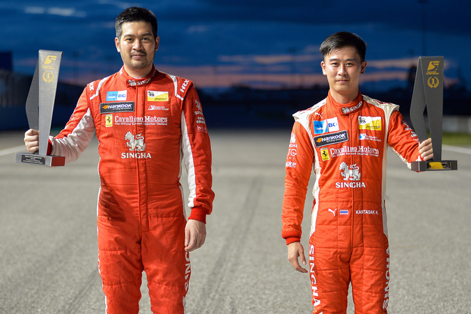 Driving Ferrari GT3, the Singha Motosports Team Thailand racers crossed the finish line in 1:02:04 hours in the first race of the series which was postponed due to COVID-19.