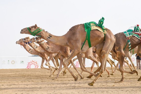 Camel racing is a popular traditional sport in the Arab world. Camels good at racing are known for having specific features such as light weight, small palms, large chest size, long legs and long tail.