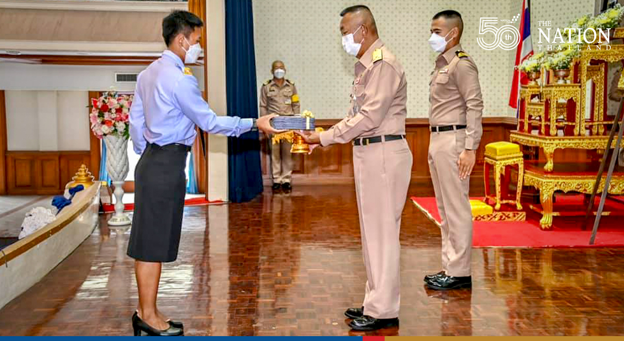 Sudaporn "Taew" Seesondee and 48 other trainees received their certificates from Vice Admiral Kraisri Kesorn, chief of the academy, during a ceremony in Samut Prakan on Thursday morning.