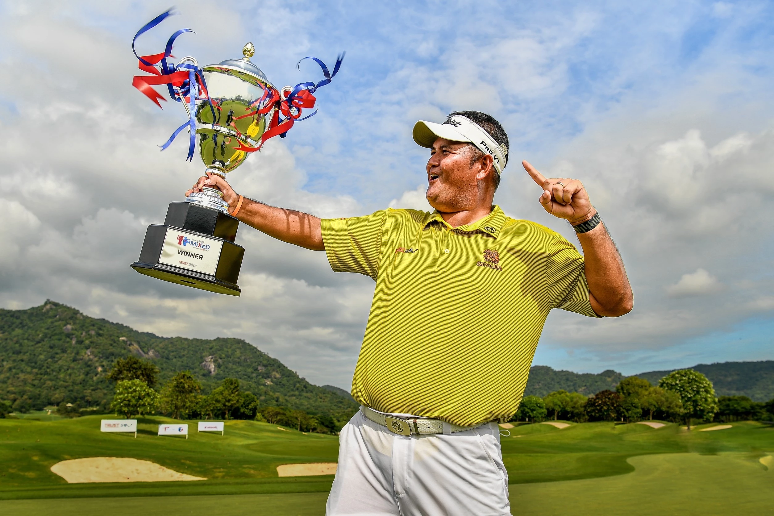 Relying on his accurate putts, the 37-year-old fired seven birdies for a final 65, signing off with a total 23 under-par-265 which propelled him to his second win on the TrustGolf Tour after sharing the title with close friend Chapchai Nirat in the second circuit in Chiang Mai seven months ago.