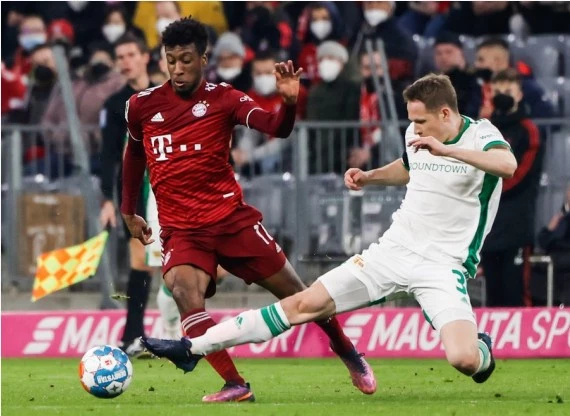 Bayern played its league match against Freiburg with one additional player after Kingsley Coman failed to leave the pitch.