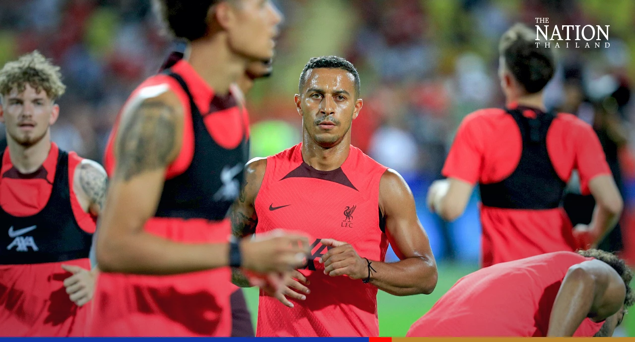 Liverpool coach Jurgen Klopp conducts a training session in front of fans at Rajamangala Stadium on Monday, ahead of the clash against Manchester United on Tuesday.