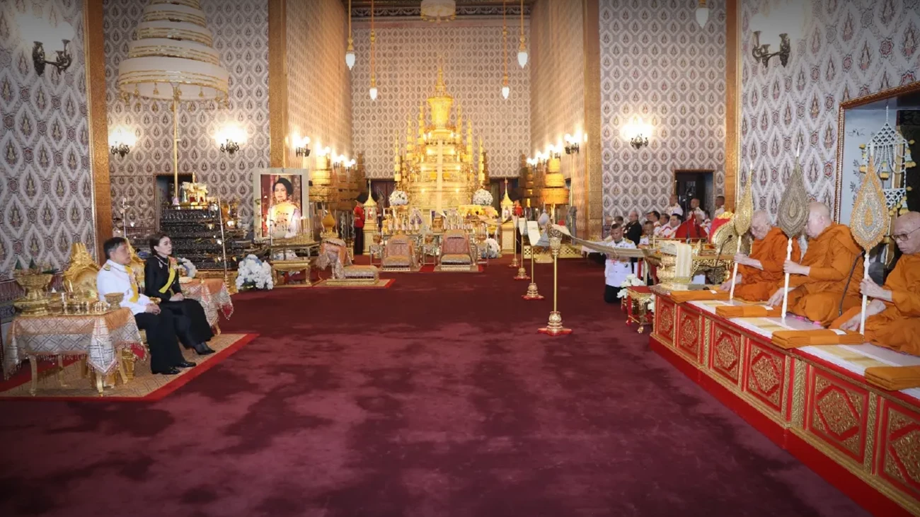 During the Royal Ceremony of Water-Pouring for the late Her Majesty Queen Sirikit, The Queen Mother, held at the Piman Rattaya Throne Hall in the Grand Palace on October 26 2025 at 17:00, Their Majesties the King and Queen presided over the ceremony.