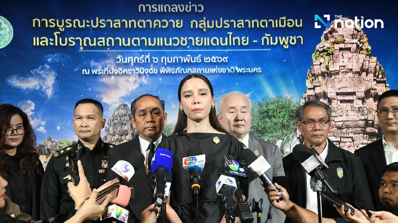 At the press conference, Sabida explained that, in response to Cambodia’s protest, the Ministry of Culture clarifies that Ta Kwai Temple and the Ta Muen temples are Thai heritage sites. The Ta Muen Thom and Ta Muen Toad temples were declared heritage sites in the Royal Gazette in 1935, and the Thai government approved funding for restoration between 1990 and 1996, during which the main temple restoration was completed without any objections from Cambodia.