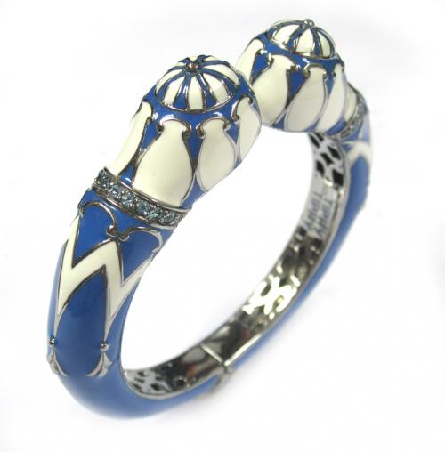 The bangles, necklaces and rings feature blue and white enamelling and Thai linear-art patterns, all embellished with blue and white topazes.