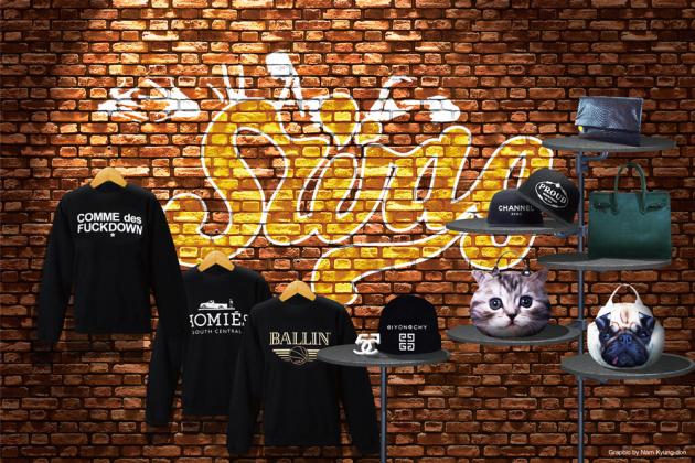 Some designers and trend setters have taken the further step of satirising designer brands and their followers. Among them is Brian Lichtenberg, a contemporary fashion designer who came up with a series of mock luxury brands such as Homies for Hermes, Ballin for Balmain, Bucci for Gucci, and Feline for Celine. As his works gained fame, secondary copycats started to appear in the market and authorised distributors stressed the “genuineness” of their “swag goods.”