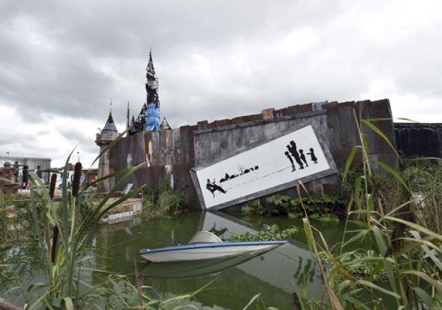 Graffiti artist Banksy has opened a dystopian theme park in an English seaside town, calling attention to Europe’s migrant crisis with grim boats and an anarchist training camp.