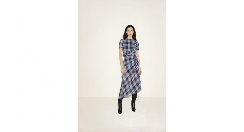 Romantic dresses and flowing ruffle tops contrast with the punk touch of a cropped jacket and leather mini dress. Subtle tartans or checks are featured on oversized trousers and suits. The masculine/feminine undertones play with the sensuality of lace.