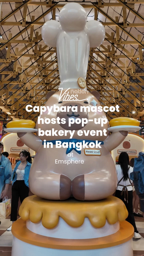 Thanks to this trend, the capybara mascot from China, “Tuntunzai,” is hosting its first pop-up event, themed around a bakery factory, to win the hearts of people in Thailand. The event runs until May 26.