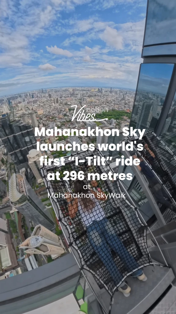 Bangkok’s iconic King Power Mahanakhon has unveiled a thrilling new attraction. Mahanakhon Bangkok I-Tilt, the world’s first leaning glass platform suspended 296 metres above ground on the 75th floor, is now the highest playable point in Thailand.