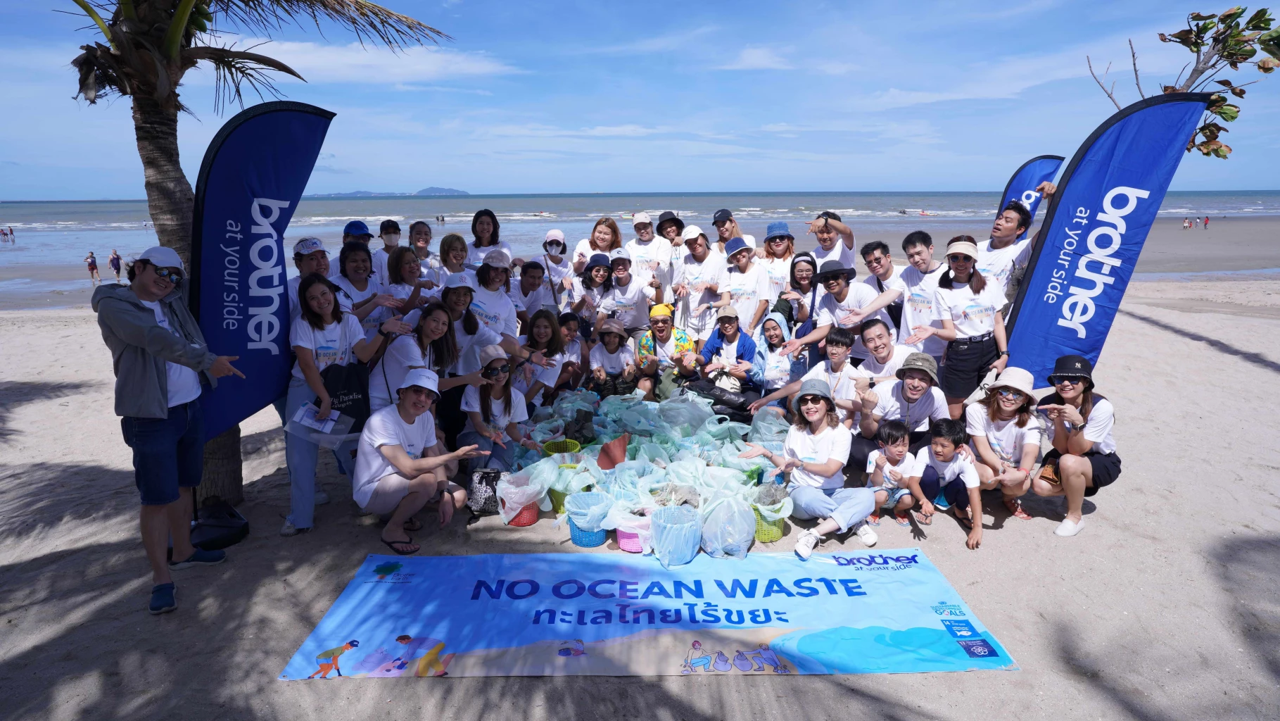 Today's event was held at the lower Bangsaen beach, Muang Saen Suk, Muang, Chonburi province. The event received great support from the management team led by Mr Teerawut Supapunpinyo, Managing Director of Brother Commercial (Thailand) Co., Ltd., together with representatives of Saen Suk Subdistrict Municipality, as well as more than 60 volunteers and their companions.