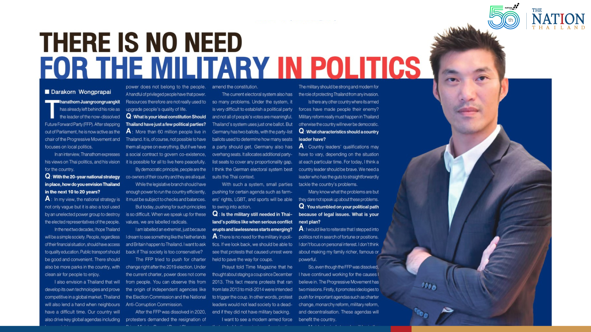 In an interview, Thanathorn expresses his views on Thai politics and his vision for the country.