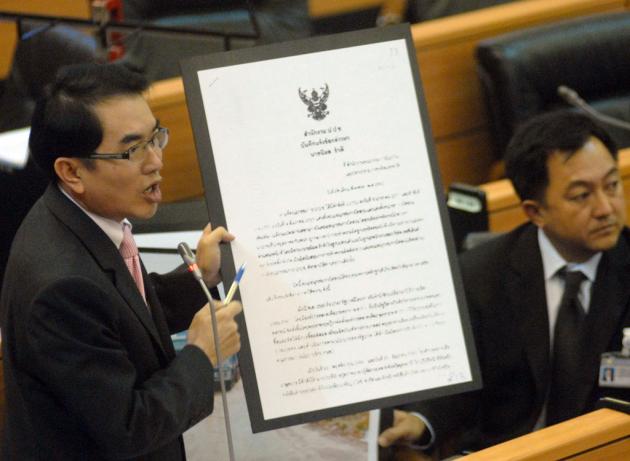 The Democrat pointed out that Rathanit was a close aide to Pheu Thai MP Rapeephan Phongruangrong, who is the wife of red-shirt leader Arisman Phongruangrong.