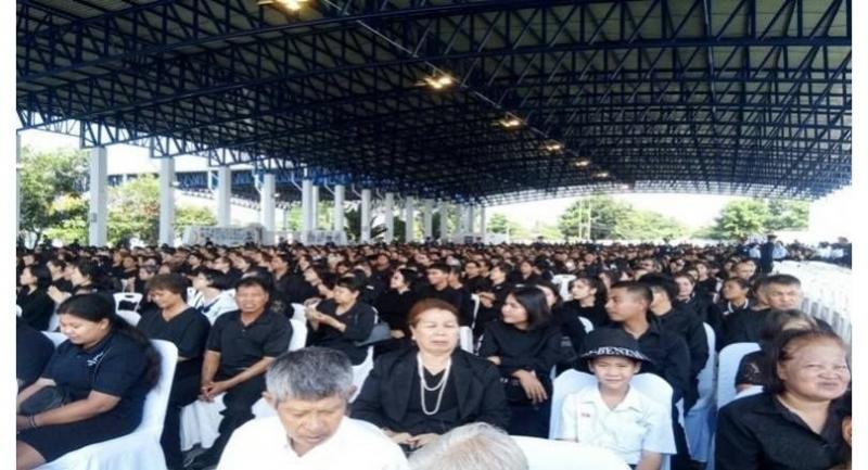 Despite the day’s hot sun, people in black mourning attire reached as far as Zeer Rangsit Shopping Mall.