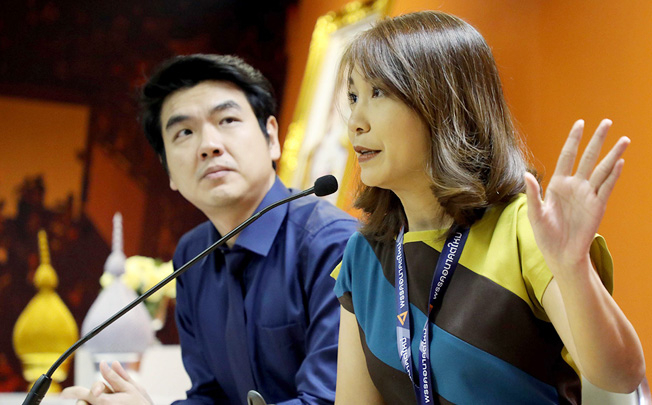 Future Forward secretary general Piyabutr Saengkanokkul and Sirikanya Tansakun, director of the policy division of the party, held a press conference to announce the Open FWP Project, which they said would establish a mechanism for the public to monitor and play a part in the work of the party and its MPs both inside and outside Parliament.