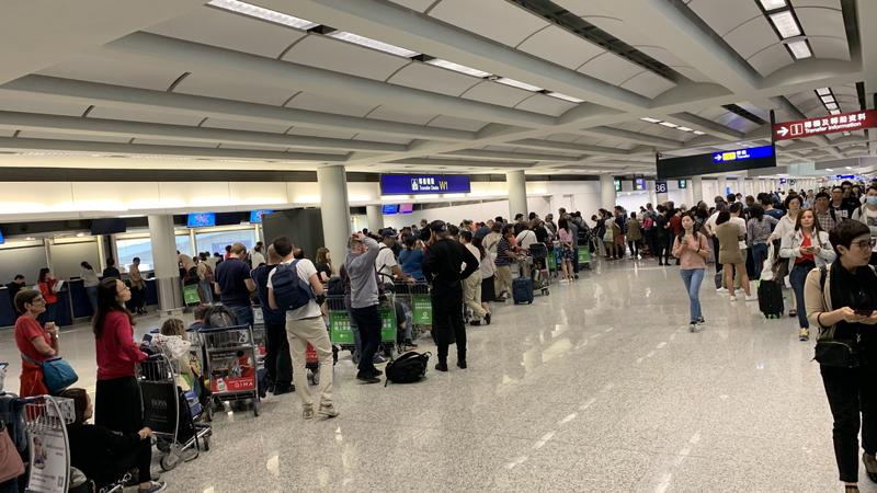 The airport, one of the world's busiest, blamed demonstrators for halting flights on Monday. The Airport Authority cancelled all outbound and inbound flights after 3:30 pm on Monday after a large number of protesters seriously hindered operations.