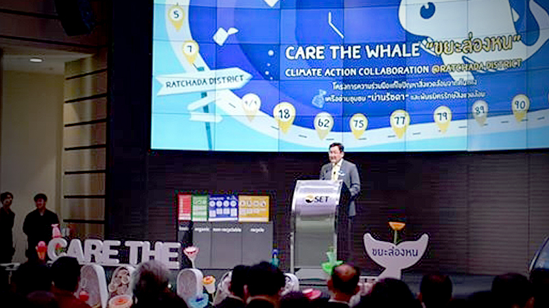SET President Pakorn Peetathawatchai explains that the whale is the symbol of an ecosystem that requires human actions to rebalance. The campaign has developed an integrated network to establish Ratchadaphisek road as a center for waste management with circular material flow that allows materials to be recycled, supported by the project’s partner with specialised waste management knowhow.