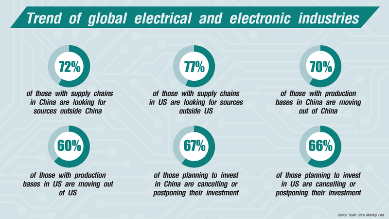 However, despite the decrease in exports for both sectors, the FTI estimates that they could well bounce back at the end of 2019 as the international trade dispute is pushing several companies and investors to move their production facilities to Southeast Asia. According to FTI, the top destinations include Thailand, Vietnam and Cambodia.