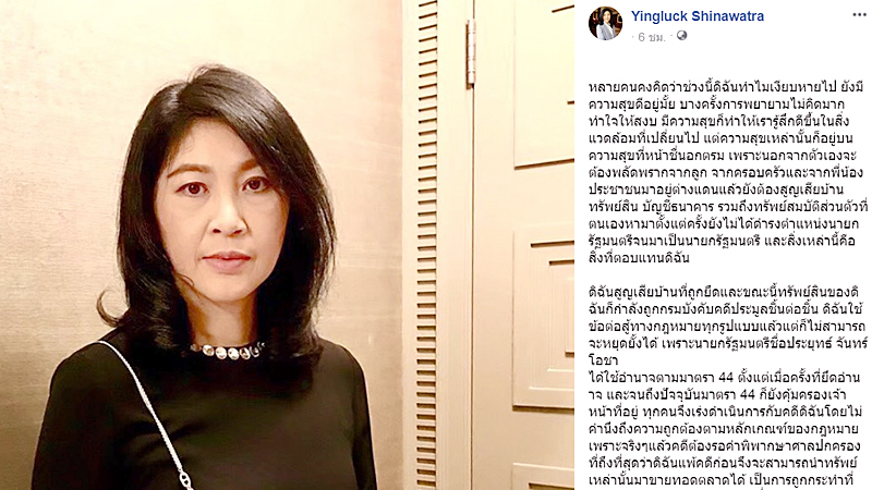 “Prayut Chan-o-cha has used the article since he seized power and plunged Thailand into military rule,” she said. “Until now, the article has been effective, and those officers did not care that they cannot sell my assets unless I am judged by the Administrative Court as a lawsuit loser.”