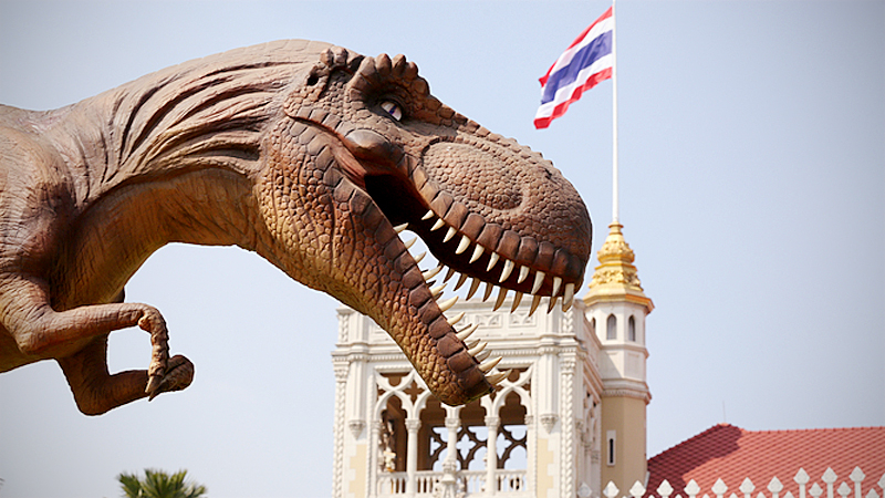 Government House is preparing for the visitors on National Children's Day on Saturday (January 11) with staff installing live-size dinosaur figures on the lawn in front of Thai Khu Fah Building.